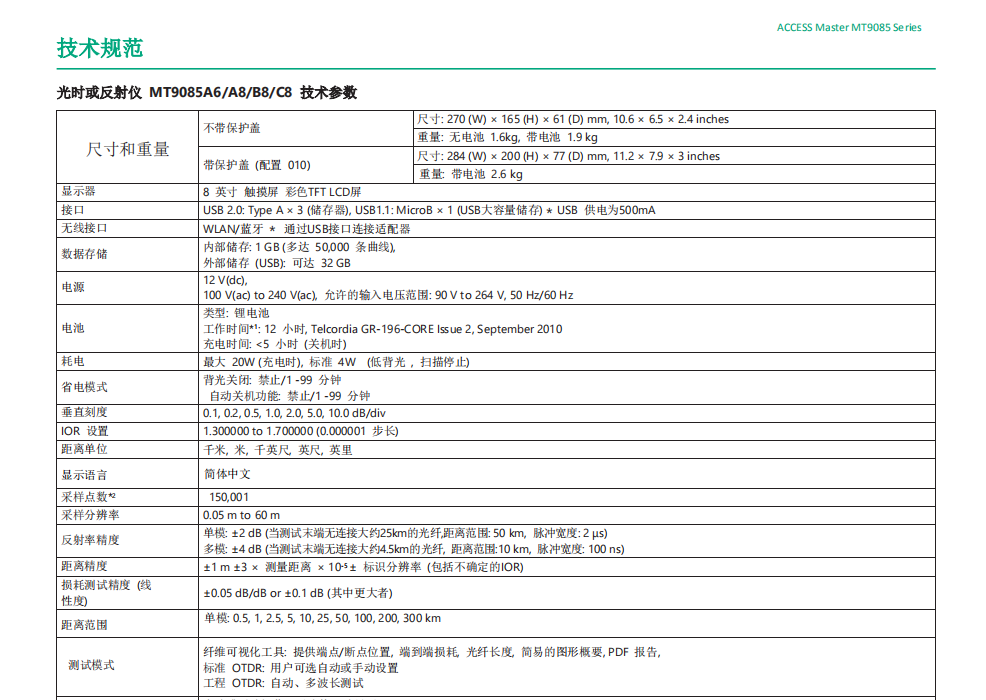 日本安立MT9085A6/MT9085A8/B8/C8光時域反射儀自帶光眼功能OTDR