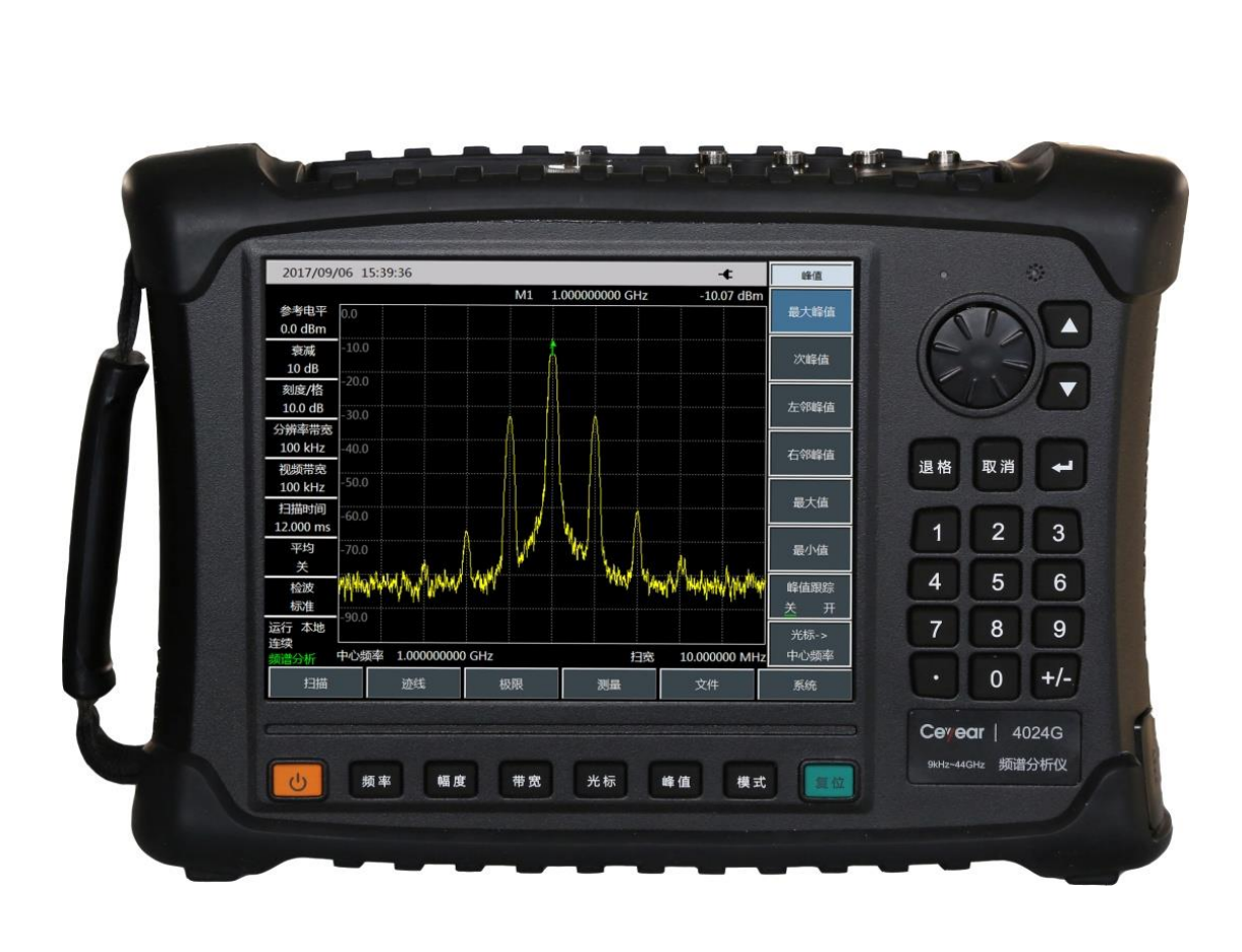4024頻譜分析儀系列產品具有工作頻段寬、性能指標高、掃描速度快、測試功能多、操作簡便等多重優點,并且采用手持式結構形式,體積小、重量輕、可電池供電,可應用于雷達、通信、電子對抗與電子偵察、精確制導等各種電子武器裝備的現場安裝調試及維修保障等方面。