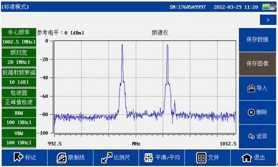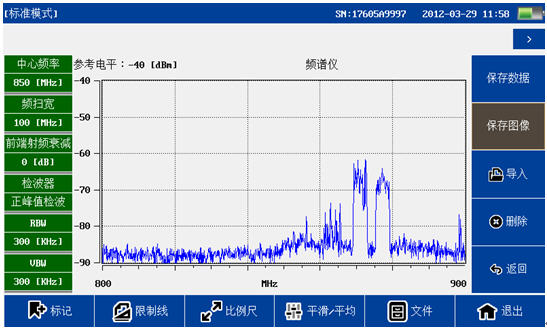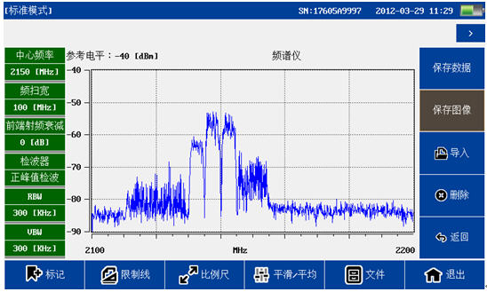 頻譜分析模塊覆蓋頻率范圍300MHz-4GHz,100dB超大動態范圍,-130dBm平均噪底@RBW=1kHz,提供頻譜測試,干擾排查等測試。