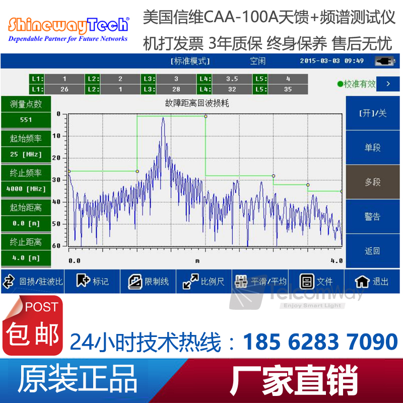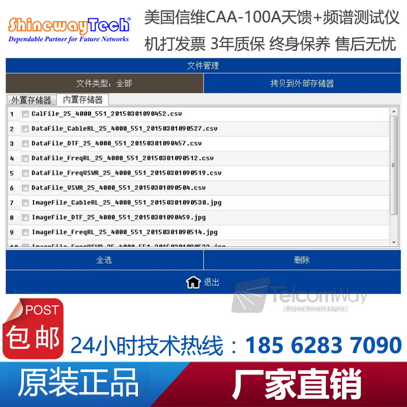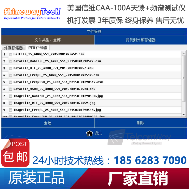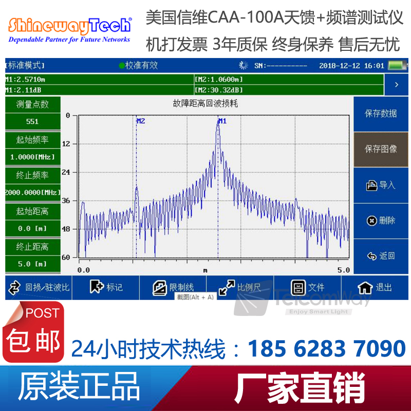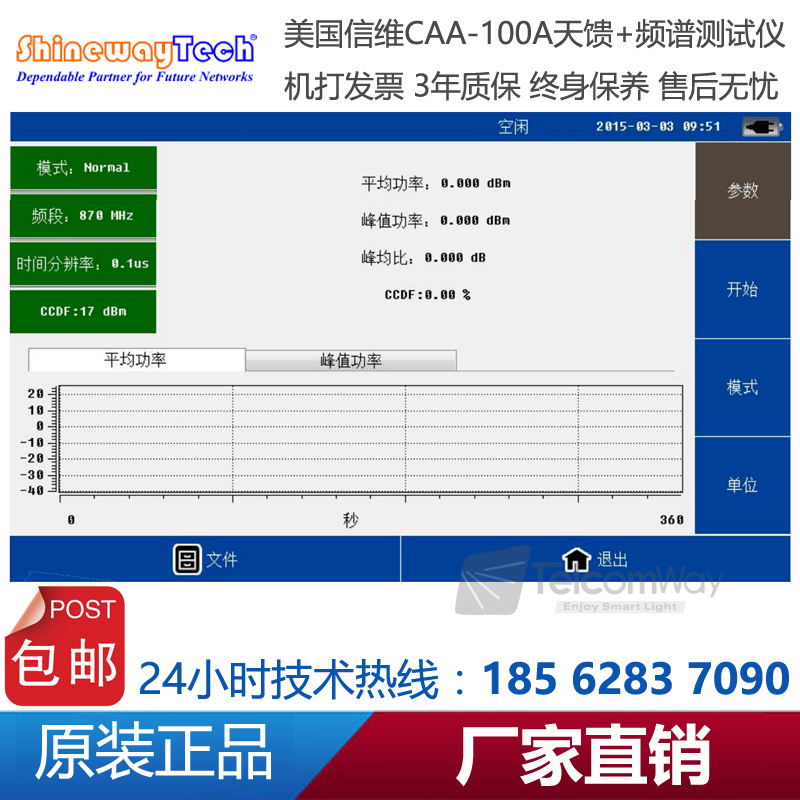 CAA-100A系列天饋線頻譜測試儀是一款由信維科技?推出天線、饋線、電纜測試,射頻功率測試,以及頻譜分析測量的綜合性儀器。CAA-100A的天饋功能能夠測試基站天線和饋線的駐波比和匹配性及電纜損耗和長距離故障定位,快速評估傳輸線和天線系統的狀況,縮短新基 站所 需 要的 安 裝調 試 時 間;1MHz~4.4GHz超寬測試頻率范圍,60dB超大動態范圍,多種選件功能廣泛適用于2G/3G/4GWiFi等制式下測試。頻譜分析模塊覆蓋頻率范圍300MHz-4GHz,100dB超大動態范圍,-130dBm平均噪底@RBW=1kHz,提供頻譜測試、干擾排查等測試。CAA-100系列25MHz~4GHz超寬測試頻率范圍,60dB超大動態范圍,多種選件功能廣泛適用于2G/3G/4G/WiMAX等制式下測試。CAA-100系列采用7寸超大觸摸屏設計,8小時超長續航時間,用戶體驗極好。CAA-100系列是新一代無線網絡建設、升級、維護必不可少的測量工具。