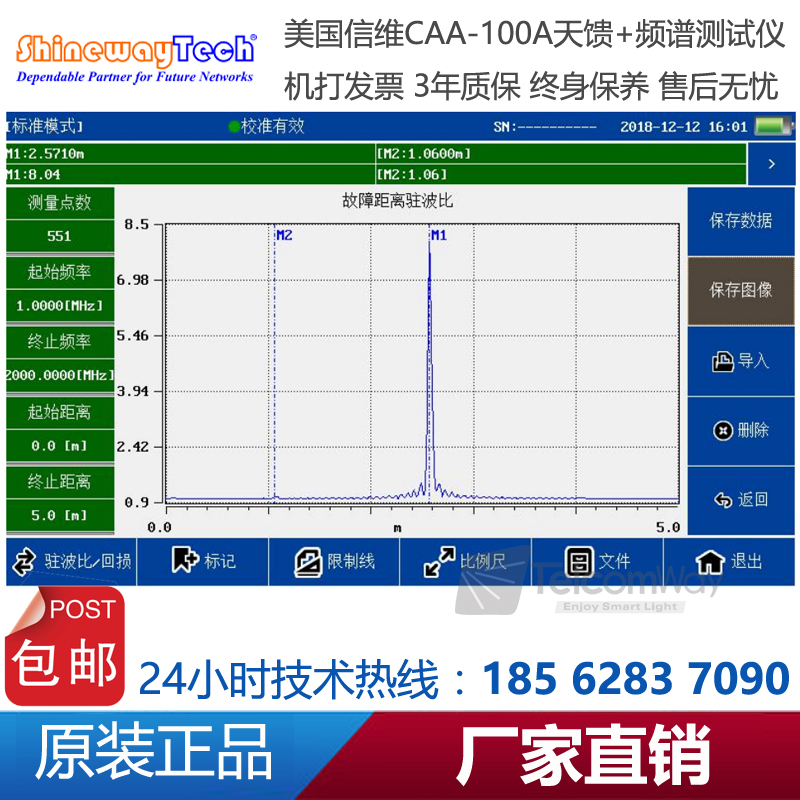 支持持故障距離回波損耗,故障距離駐波比, 頻率回波損耗,頻率駐波比,電纜損耗,射頻功率計和頻譜儀多種測量模式,主界面設計精美、用戶操作便捷。